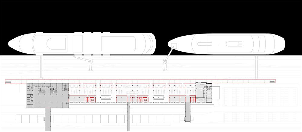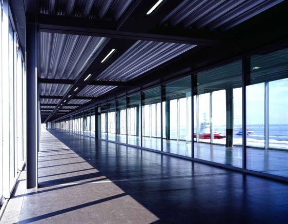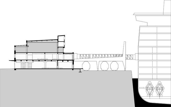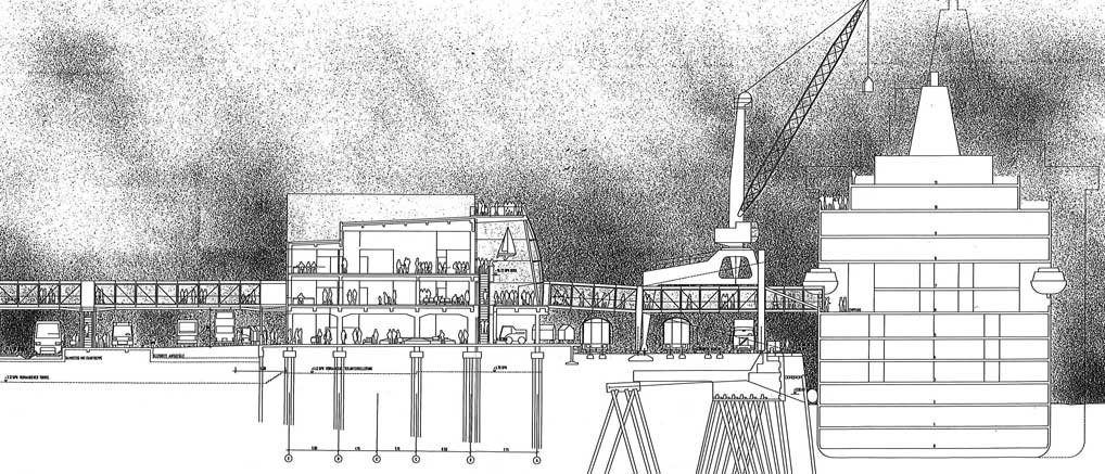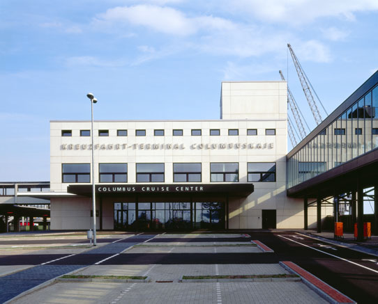Umbau des alten Columbusbahnhofs aus den sechziger Jahren zu einem modernen Terminal der Seetouristik. Grundlage der Baumaßnahme ist das Gutachten, wonach vorgesehen war den Mittelbau abzubrechen, den Nordflügel zu entkernen und das Gebäude zur Seeseite hin mit einer Glasfassade zu öffnen. Realisiert wurde ein reduziertes Programm, wesentlich die Neuorganisation der Funktionsabläufe für den Passagierabfertigungsbetrieb und die Erneuerung der Fassaden. Im Erdgeschoss, das ehemals dem Stückgutverkehr vorbehalten war, wurden die Abfertigungsbereiche mit der Sicherheitskontrolle untergebracht, im 1. Obergeschoss entstand eine lichtdurchflutete Wartehalle, die die Passagiere mit ihren skandinavischen Flair und dem Blauband-Cafe auf den Aufenthalt an Bord einstimmt. Zwei Gleise des ehemaligen Columbusbahnhofs wurden zugunsten eines Bussteigs zurückgebaut. Ein transparenter Hochsteg verbindet die Fahrgastbrücken und ermöglicht den witterungsgeschützen Übergang zu den Schiffen. Am neuen Terminal können bis zu drei Kreuzfahrtschiffe gleichzeitig abgefertigt werden.