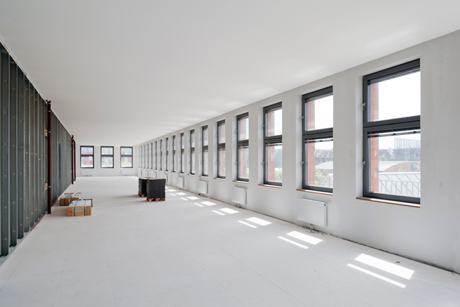 Die kranzförmig um einen Kern angeordneten Labor- und Büroräume sind flexibel einteilbar und durch die gleichmäßige Befensterung optimal belichtet.