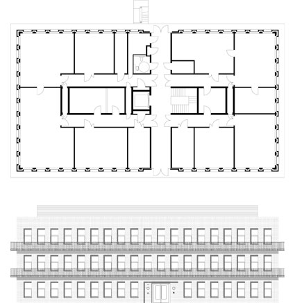 Die Variabilität im Inneren des Gebäudes entspricht dem rationalen Ausdruck der Fassade.