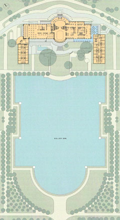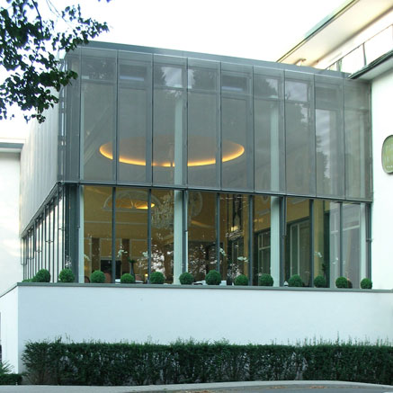 Neubau des Ostflügels mit 24 Zimmern und 6 Suiten, eines Frühstücksraumes einer neuen Anlieferung sowie Büroflächen für die Verwaltung. Der Baukörper orientiert sich mit seiner Volumetrie und Geschossigkeit am gegenüberliegenden Westflügel und vervollständigt die Achsensymmetrie der Benque'schen Zentralanlage. Ein ca. 7 m hoher Wintergarten mit Schauküche bildet das Bindeglied zwischen Hauptbau und Ostflügel und kann als Frühstücksraum genutzt oder dem Restaurant zugeordnet werden. Auf die Vielfalt der vorhandenen Stilrichtungen des Altbaus wird mit Reduktion und Stringenz in der architektonischen Gestaltung reagiert. Schmale stehende Fensterformate bestimmen das Erscheinungsbild. Die Fassaden sind aus einschaligem Porenbeton-Mauerwerk mit einem feinkörnigen Silikatputz erstellt.