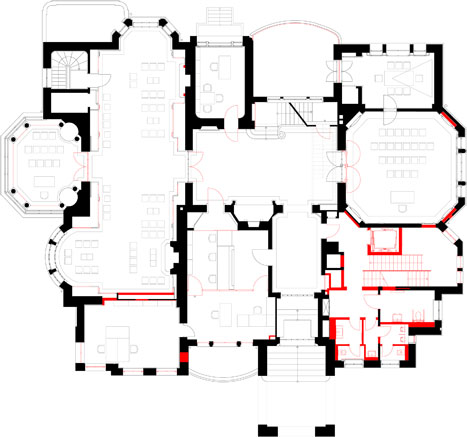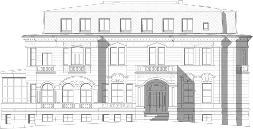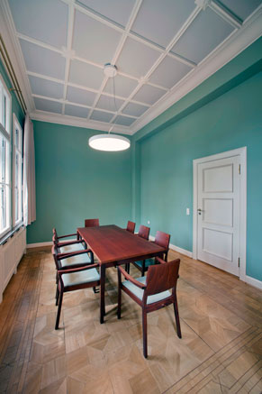 Ziel der Sanierung ist das Bewahren des Ortes und der Geschichte des Hauses. Diese wird sichtbar gemacht durch das Erspüren der architektonischen Idee und der historischen Raumgefüge. Fragmentarisches zur Schau stellen von alter Bausubstanz wird vermieden. Das neue Farbkonzept baut auf den historischen Farbentönen auf, unterstützt die Räume in ihrer Funktion und ihren Stärken und verbindet historische und neue Räume zu einem harmonischen Gesamteindruck.